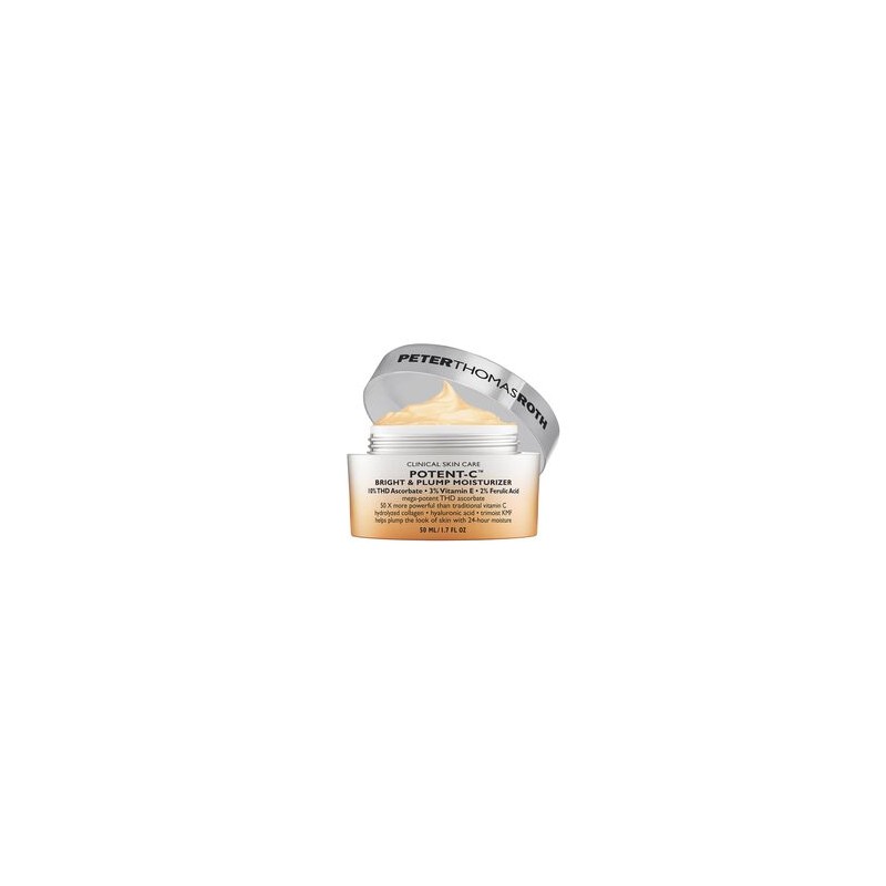 Lo que es: Humectante facial con vitamin C, antienvejecimiento. ¿Para qué tipo de piel es bueno? ✔ Normal ✔ Grasa ✔ Mixta ✔ Seca Soluciones para: - Arrugas y líneas de expresión - Manchas Lo que hace: El humectante brillante y regordete Potent-C ™ brinda beneficios completos antienvejecimiento, reafirmantes y aclarantes con 10% de ascorbato THD, 3% de vitamina E y 2% de ácido ferúlico. Ayuda a rellenar e hidratar la apariencia de la piel con colágeno hidrolizado, elastina hidrolizada y ácido hialurónico.