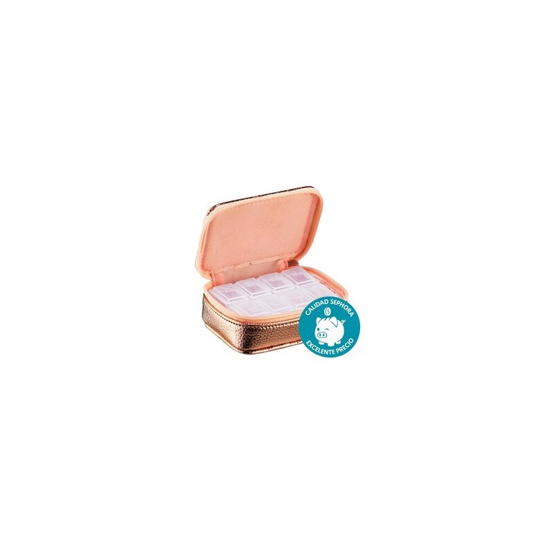 Lo que es: Estuche de viaje para guardar tus suplementos. Lo que hace: Este estuche de cuero sintético oro rosa cuenta con ocho compartimentos para un almacenamiento y organización máxima de todos tus suplementos o píldoras. Su tamaño pequeño lo hace perfecto para usar en cualquier lugar y se almacena en cualquier lugar fácilmente.