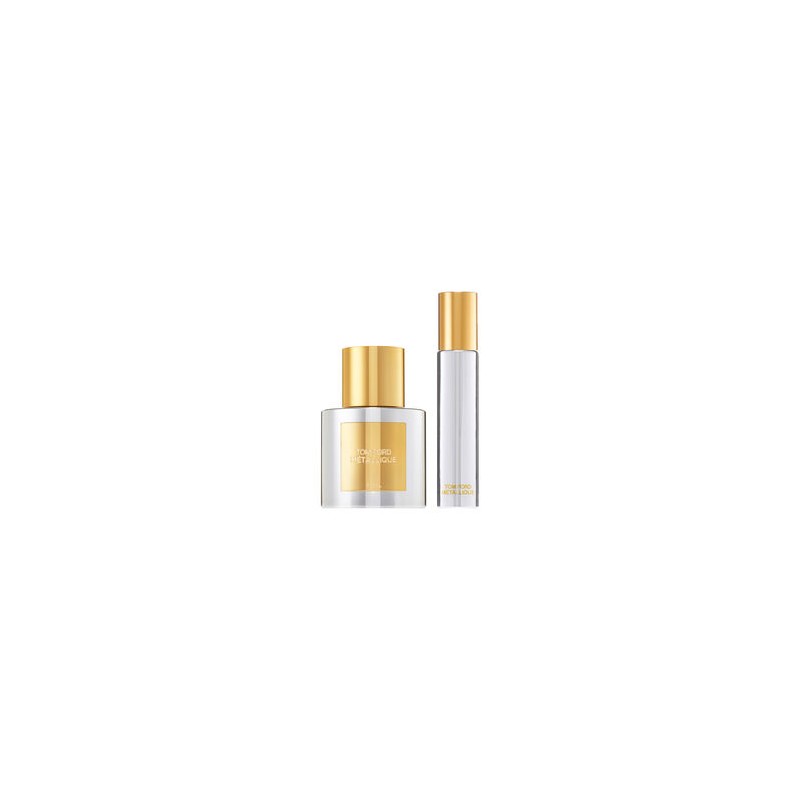 FORJADO CON UN ELEGANTE BRILLO, TOM FORD MÉTALLIQUE HIPNOTIZA A SUS ADMIRADORES CON UN FLASH PULSANTE DE FEMINIDAD ACTUAL. CAPRICHOSA, LUMINOSA Y EN PLENA FLORACIÓN, UNA CORAZA DE ADICTIVOS ALDEHÍDOS DE GRAN BRILLO ENVUELVE SU NÚCLEO DE SENSUALES FLORES BLANCAS.