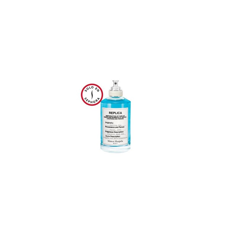 La silueta de cada botella 'REPLICA' está inspirada en frascos clásicos de boticario. Cada botella lleva una etiqueta hecha 100% de algodón, con texto impreso en tinta negra que se asemeja a las etiquetas utilizadas en la ropa de la colección 'REPLICA'. La tapa está envuelta con una cuerda que simboliza la reproducción auténtica y artesanal de la colección.